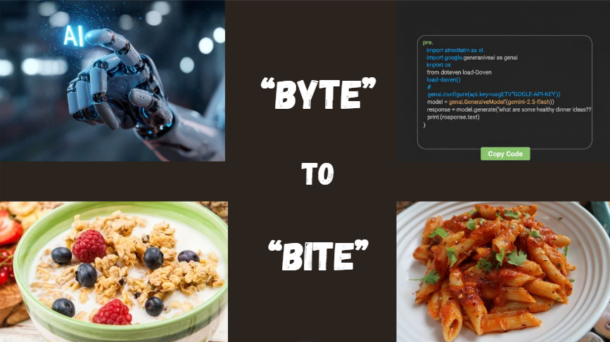 "Byte to Bite" is a unique tech-culinary challenge event at graVITas 25 where technology and cooking intersect. Participants learn basics of AI Wrappers and prompt engineering, then build their own AI recipe generator. Using this custom AI model, they create a unique dish from a mystery box of ingredients. This event tests skills ranging from programming (script) to actual cooking (skillet), blending innovation with culinary creativity in a fun and educational experience.